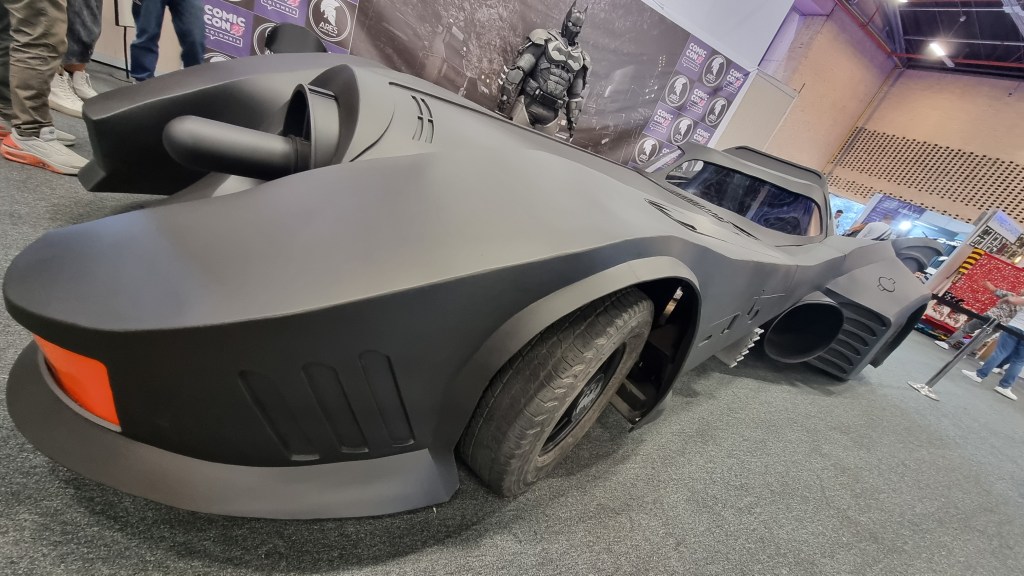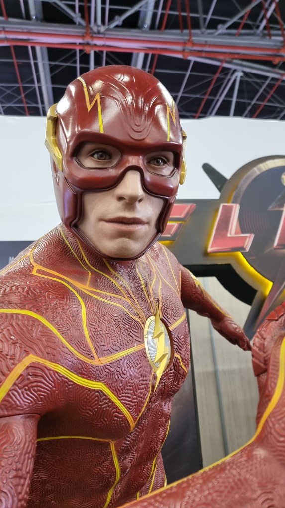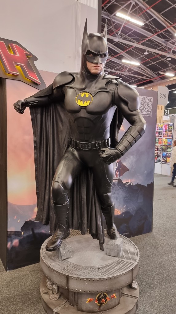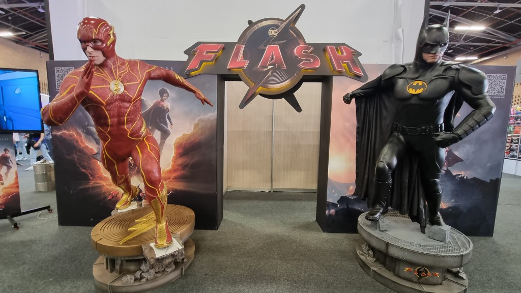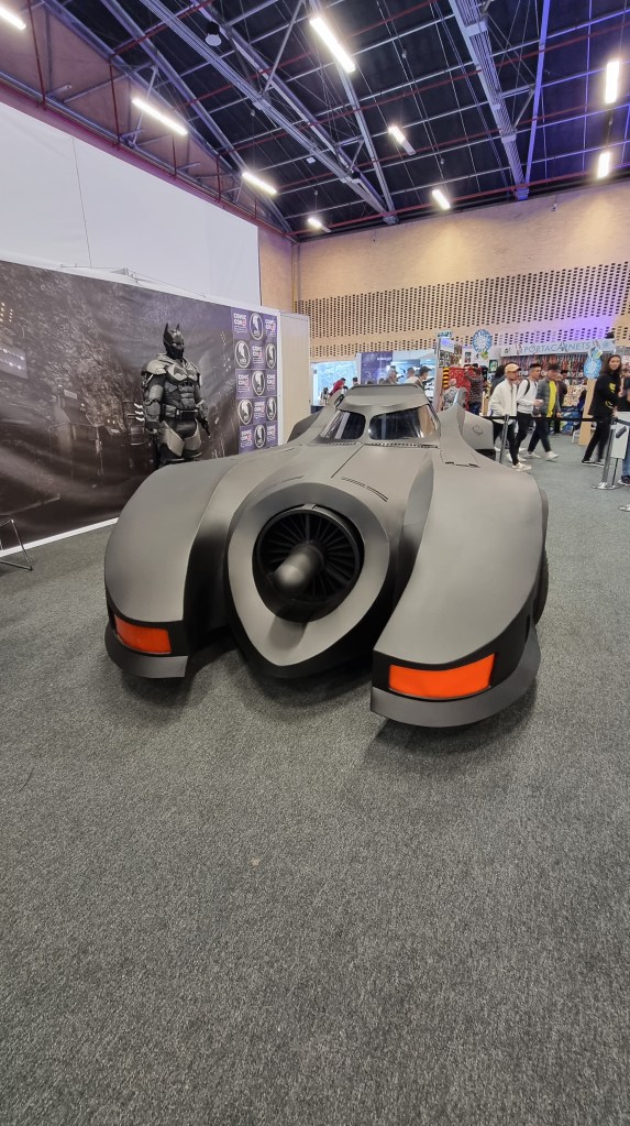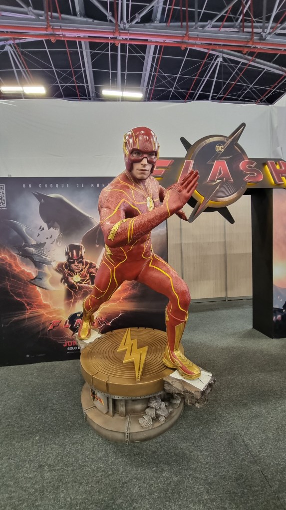 Una exhibicion queme gustó muchísimo, fue la del carro de Batman del ’89, y al frente, las estatuas de Batman y Flash, de la película.