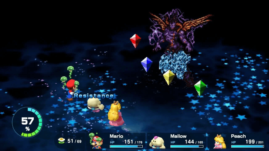 El juego añade un bestiario el cual para «completarlo» debemos utilizar la habilidad de Mallow para descubrir las debilidades del enemigo, el juego también tiene los minijuegos del original como las carreras con Yoshi, el vagón de la mina, el rio, etc… en si es realmente un remake bastante fiel del original pero con muchos agregados y mejoras que se agradecen bastante para los que disfrutamos este juego en su tiempo.