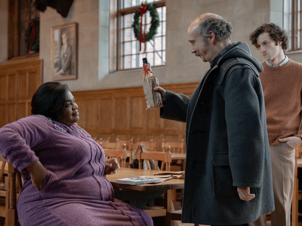 La cinta es realmente buena e interesante, tiene bastante comedia por lo que puedes mantenerte bastante entretenido mientras la vez, esto es en gran parte gracias a los actores que la protagonizan, Paul Giamatti hace un excelente papel como el profesor Paul Hunham como alguien bastante estricto y gruñón con sus alumnos, lo acompaña la mayor parte de la película Angus Tully (Dominic Sessa) que como ya dijimos es un joven problemático que suele meterse en problemas, esto ya que su madre parece prestarle mas atención a su padrastro que a el, pero en realidad es alguien bastante inteligente, este actor igual hace bien su papel aunque no de forma tan destacada como Giamatti, también les acompaña recurrentemente la cocinera Mary Lamb interpretada por Da’Vine Joy Randolph quien se roba casi todas las escenas donde aparece haciendo un excelente trabajo actoral, toda la dinámica entre estos 3 principalmente es lo que hace que esta película sea tan genial viendo como congenian entre estos y mostrando a través de sus comportamientos las verdaderas intenciones y sentimientos de cada uno.